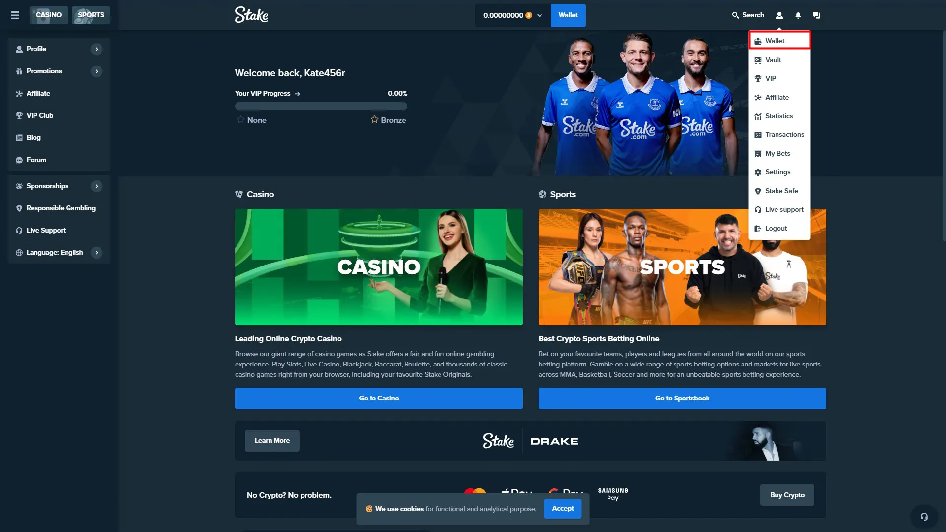 Stake Casino supports a variety of deposit methods to ensure Indian players have a convenient way to fund their accounts: